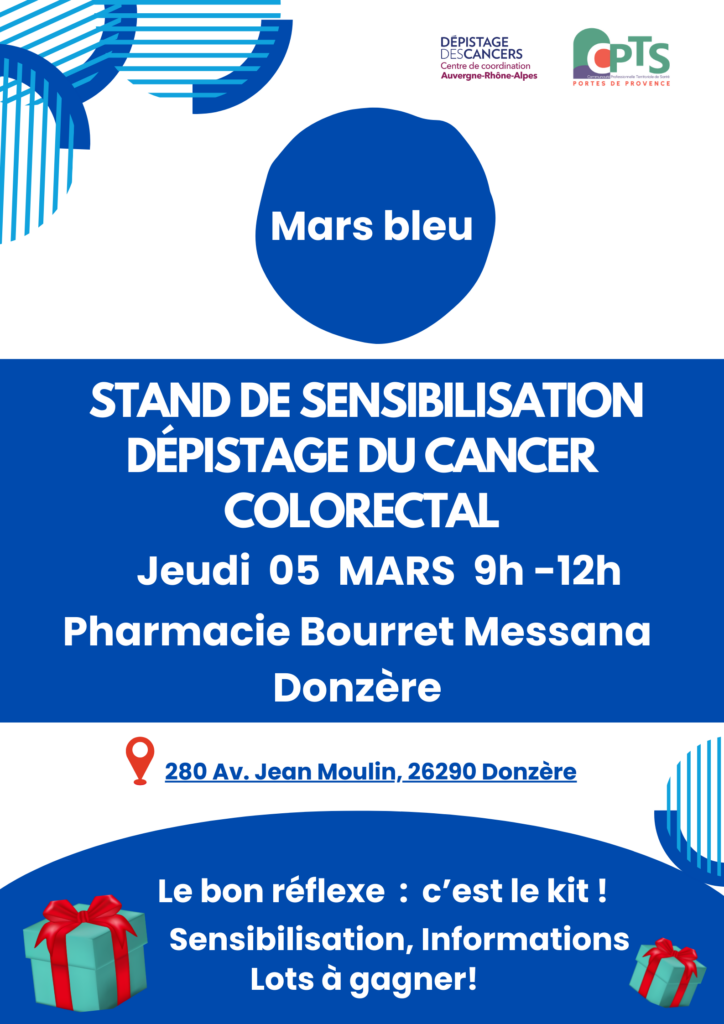 En mars, nous nous mobilisons pour Mars Bleu, la campagne nationale de prévention et de dépistage du cancer colorectal, portée notamment par Ligue contre le cancer et Institut national du cancer.